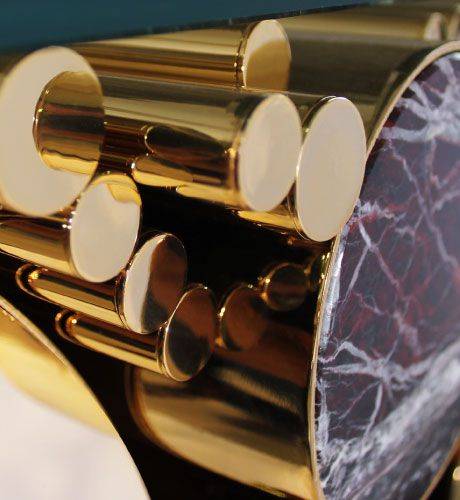 Immerse in luxury with our modern console—marble elegance, polished gold stainless steel, and glass allure.